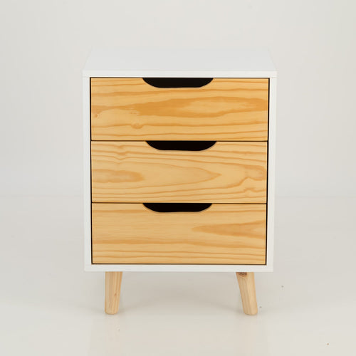 Halti White Side Table with Three Drawers - Cut Out Handles
