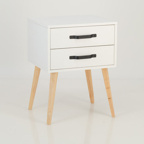Halti White Side Table with Two Drawer - Cut Out Handles