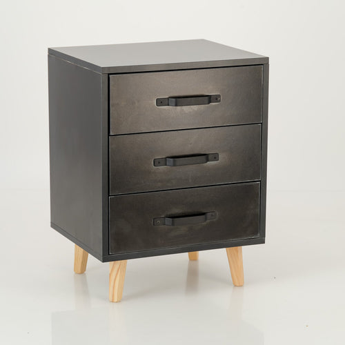 Makalu Grey Side Table with Three Drawers - Steel Handles