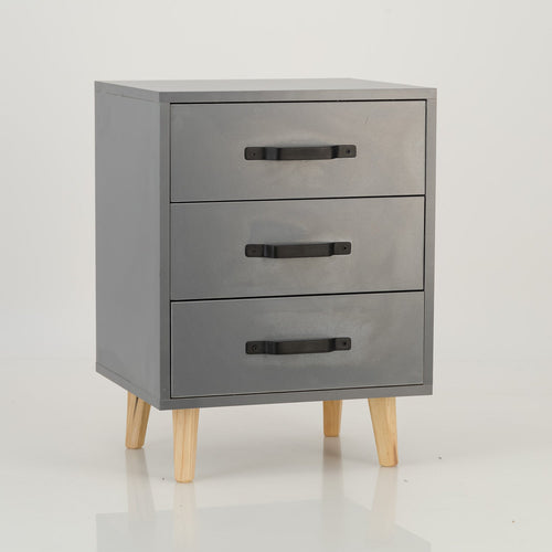 Halti Grey Side Table with Three Drawers - Cut Out Handles